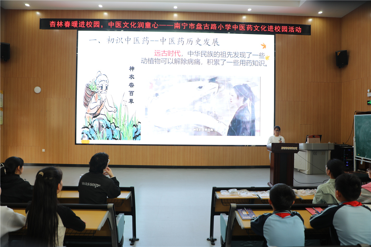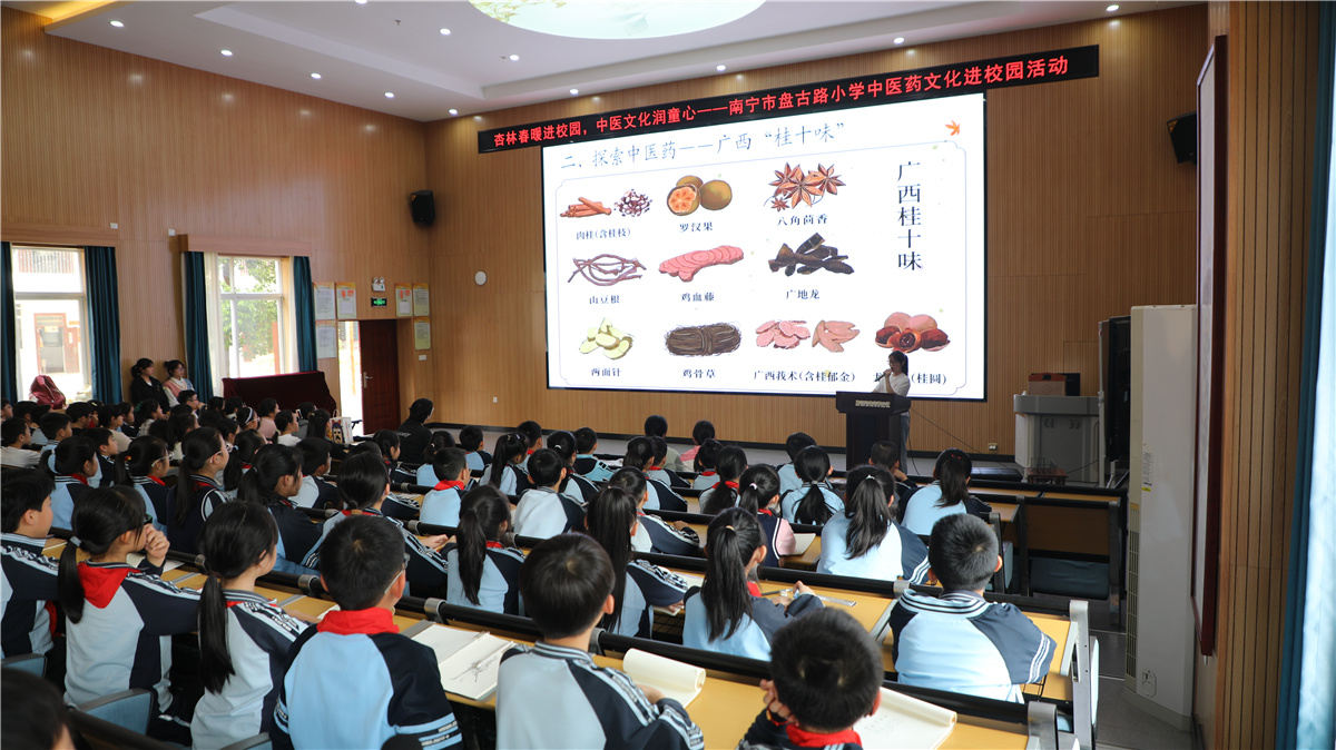 为弘扬中华优秀传统文化,推动中医药知识普及,3月21日,南宁市盘古路小学联合广西中医药大学药学院学生第二党支部开展“杏林春暖进校园,中医文化润童心”中医药文化主题宣讲活动,通过趣味互动与实践体验,帮助小学生树立健康生活理念,增强文化自信。