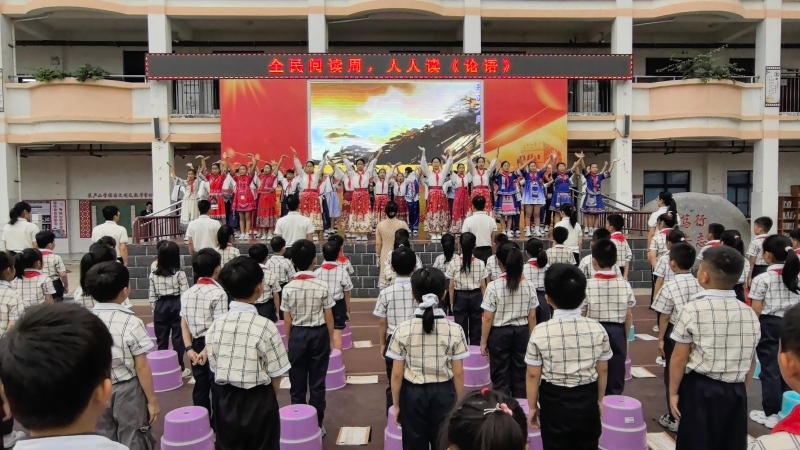 活动中,校长陈丽寄语,勉励师生以经典启智、以故事润心。全校师生齐声诵读《论语》篇章,琅琅书声回荡校园。师生代表还分享了德育故事,将圣贤智慧与品行养成有机融合。